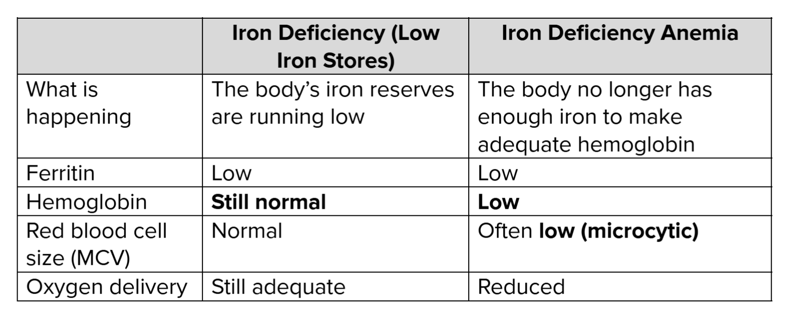 Iron Deficiency vs. Iron Deficiency Anemia